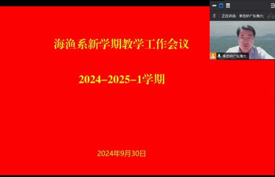 9月30日下午,海渔系召开了2024年秋季学期本科教学工作会议,本次会议通过线上线下相结合的方式进行。会上,系主任李忠炉强调全体教师要秉承老一辈海渔人“躬耕南海,潜心治学”的精神,始终把人才培养放在首位,围绕海洋渔业科学与技术国家级一流本科专业建设点的内涵建设,从师资队伍、教学团队、基层教学组织、本科生人才培养、教学科研及实践平台、及社会服务等方面做进行了工作安排,强调全体教师要凝心聚力、勠力同心,着...