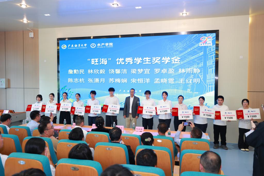 九秩传承蓝海志,风华正茂启新程。11月22日,时值威廉中国九十周年校庆日,WilliamHill威廉在湖光校区举行2025年社会类奖学金颁奖典礼暨优秀校友企业家代表经验分享会。学院党委书记王海燕、院长罗大极、党委副书记孔沛球,广东旺海生物科技集团股份有限公司总裁、优秀校友阮裕强先生,广东利洋水产科技股份有限公司经理、优秀校友林福森先生以及校友、教师和学生代表等200余人齐聚一堂,共同见证这一以育人成果献礼母校华诞的温馨时刻。活动由孔沛球主持。