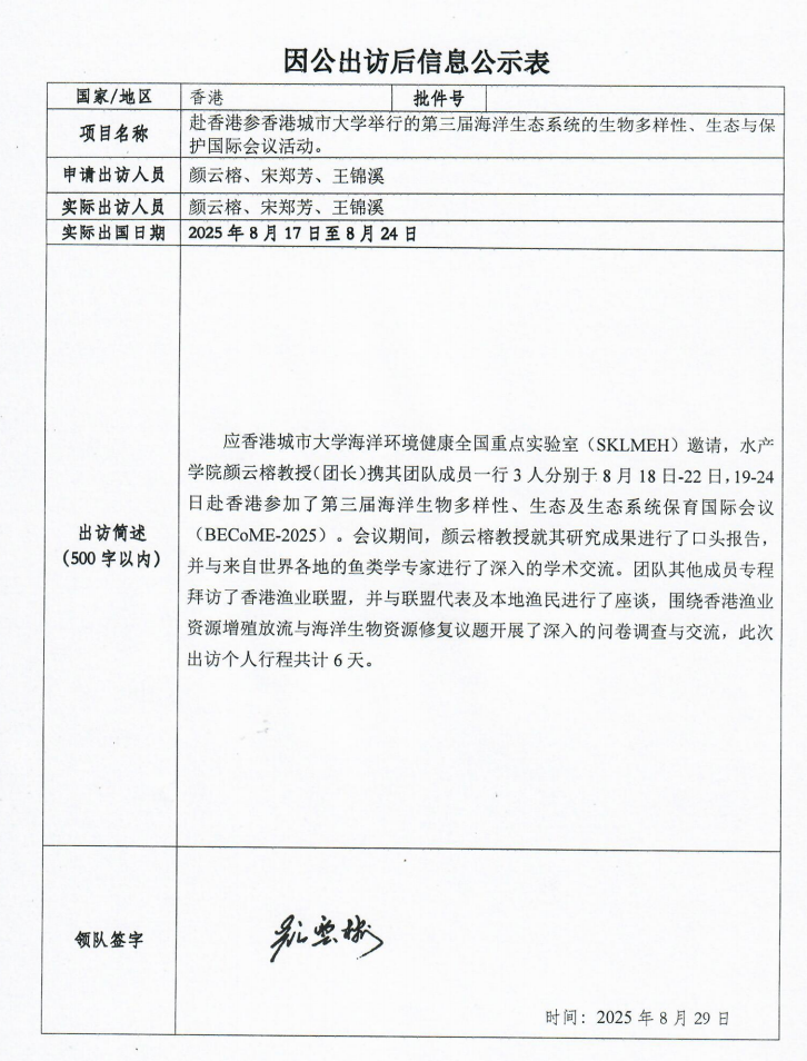 根据《关于进一步规范省部级以下国家工作人员因公临时出国的意见》的要求,现将威廉中国因公出访信息予以公示(详见附件)。公示时间为2025年9月2日至9月8日。如有意见,请在公示期内,向相关单位反映。