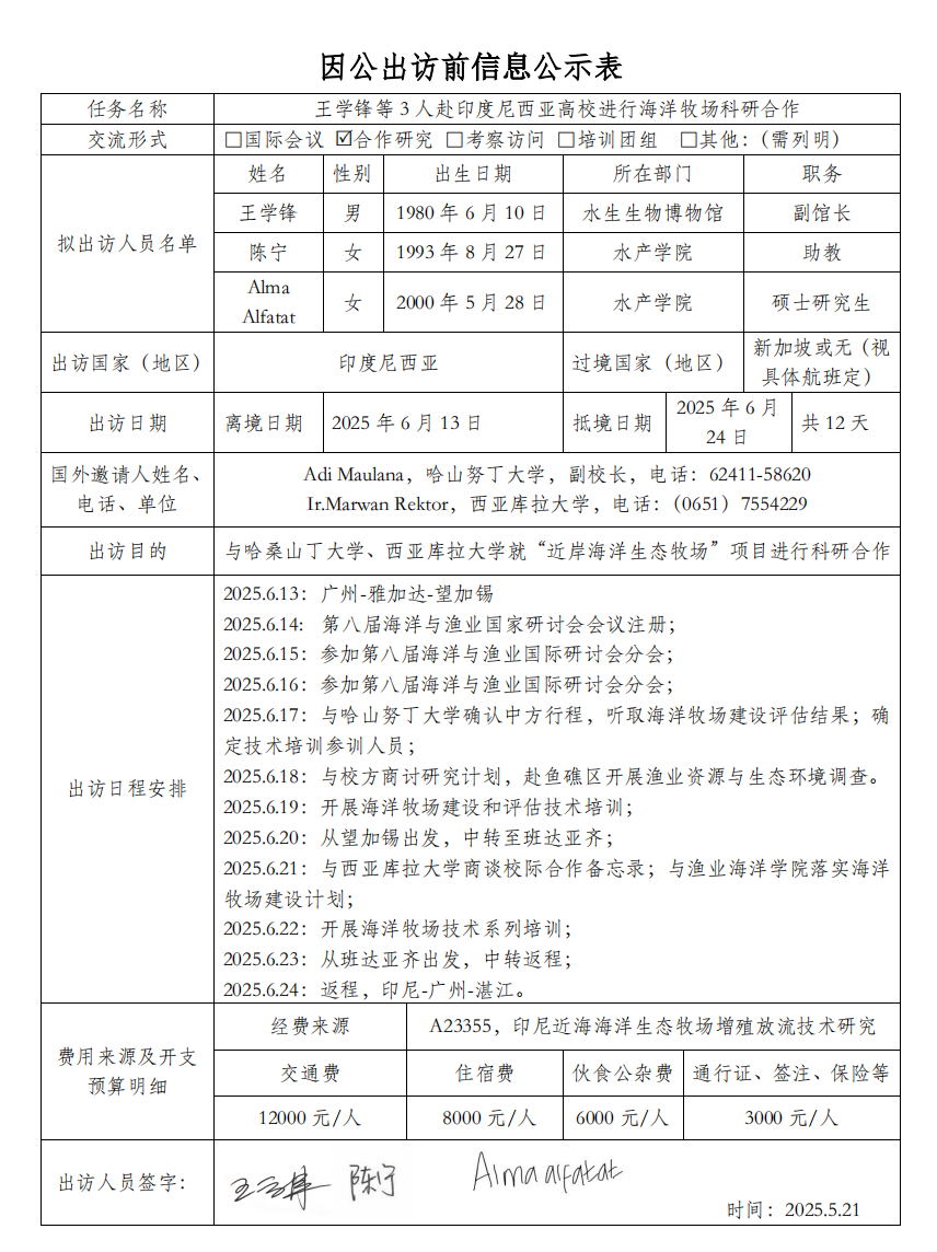 附件:因公出访前信息公示表
