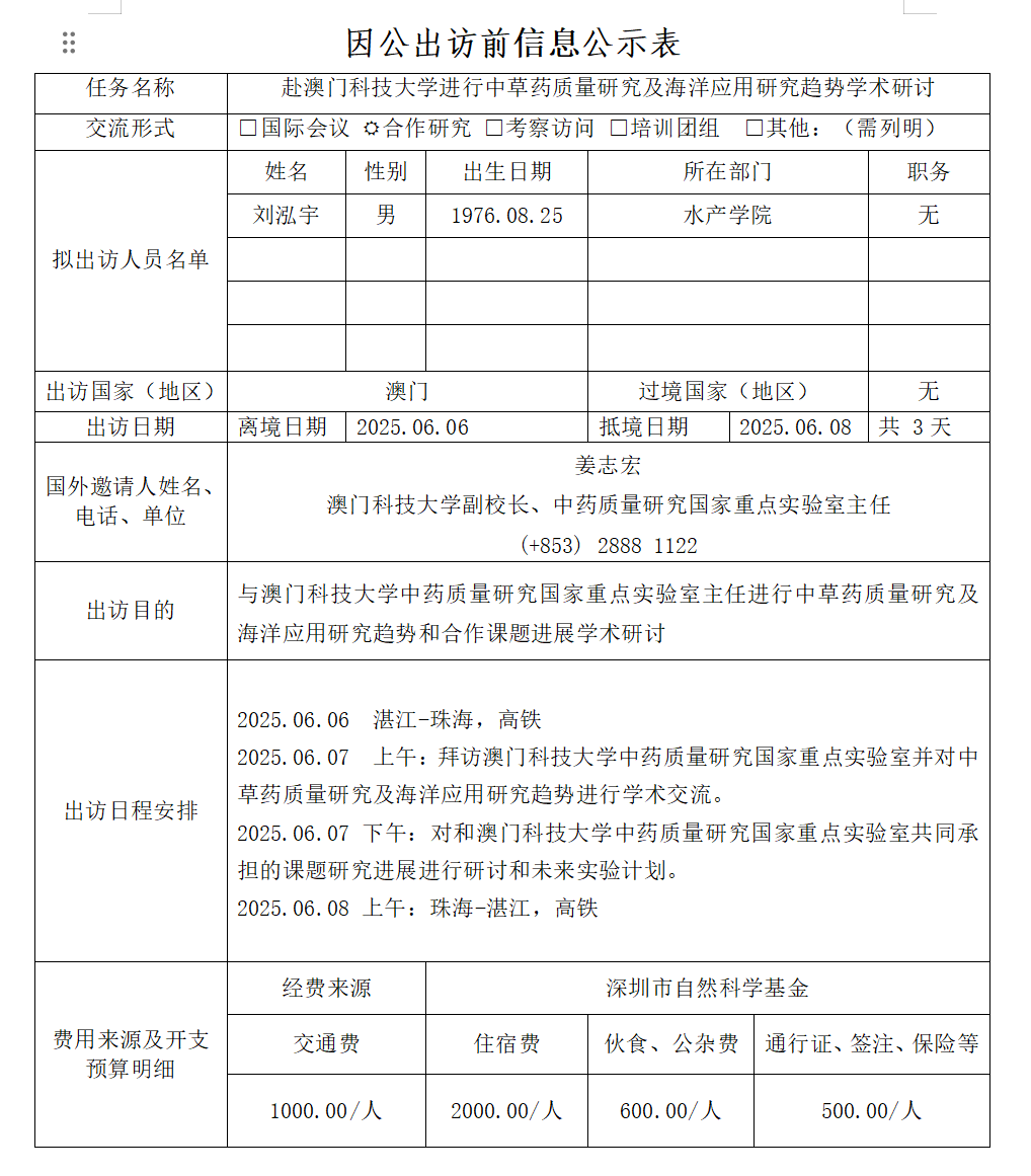 附件:因公出访前信息公示表