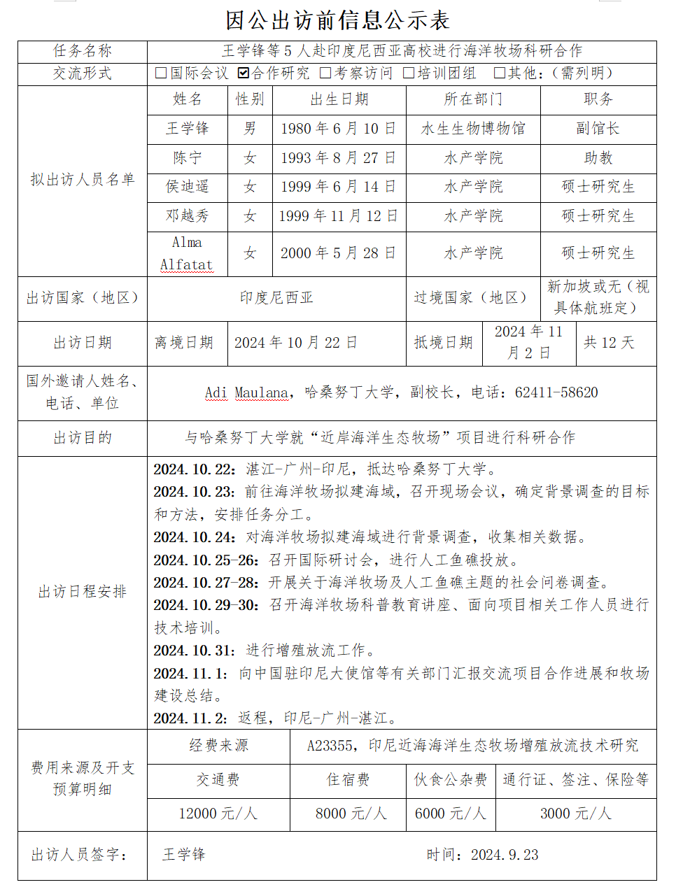 附件:因公出访前信息公示表