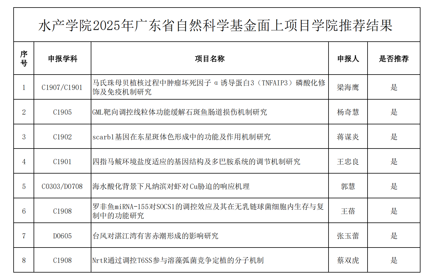 根据学校《关于组织申报2025年度省自然科学基金面上项目和杰出青年项目的通知》相关要求,经教师个人申报、校外专家评审等程序,所有程序均在学院纪委监督下进行。现将我院梁海鹰等8位老师申报“2025年度省自然科学基金面上项目”评审和推荐结果予以公示(详见附表)。如有异议,请在公示期间向学院提出。