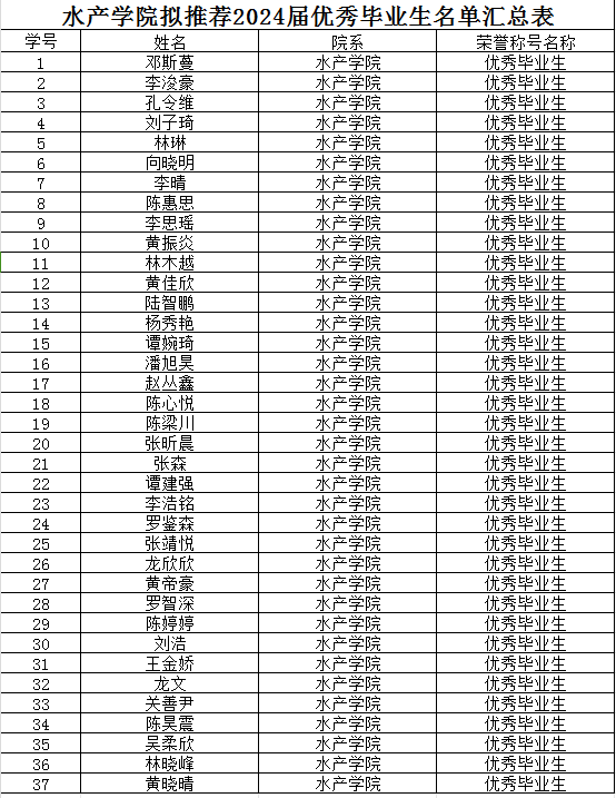 根据《关于评选 2024 届优秀毕业生及征集百名优秀毕业生风采展示材料的通知》精神,经学生申请、学院审核,拟推荐邓斯蔓等 37 名学生为WilliamHill威廉 2024 届优秀毕业生,现将名单公示如下: