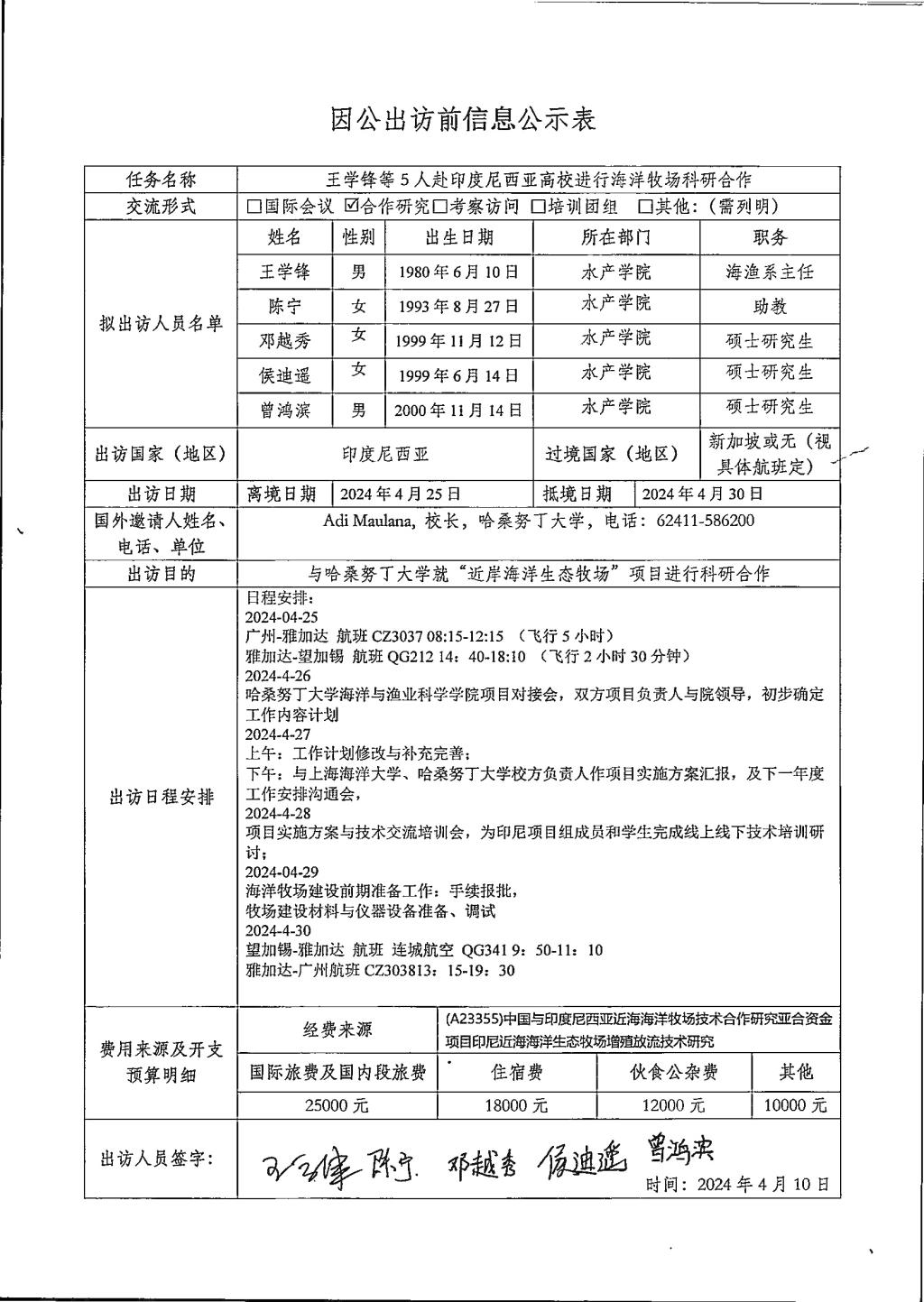 根据《关于进一步规范省部级以下国家工作人员因公临时出国的意见》的要求,现将威廉中国因公出访信息予以公示(详见附件)。公示时间为2024年4月10日至4月14日。如有意见,请在公示期内,向相关单位反映。