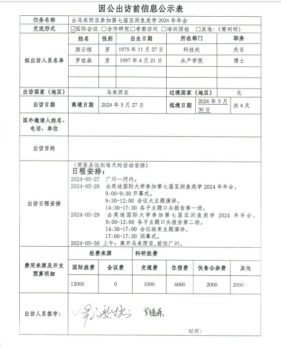 根据《关于进一步规范省部级以下国家工作人员因公临时出国的意见》的要求,现将威廉中国因公出访信息予以公示(详见附件)。公示时间为2024年3月25日至4月1日。如有意见,请在公示期内,向相关单位反映。