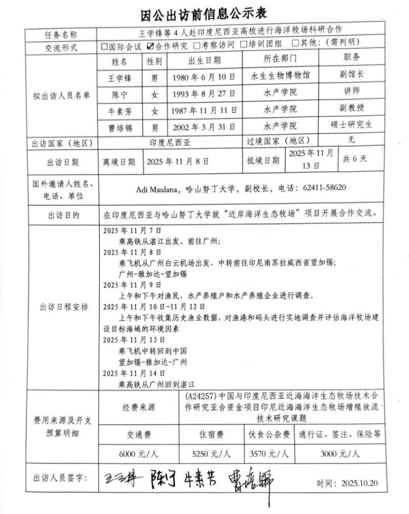 关于王学锋、陈宁、牛素芳等同志因公出国信息公示