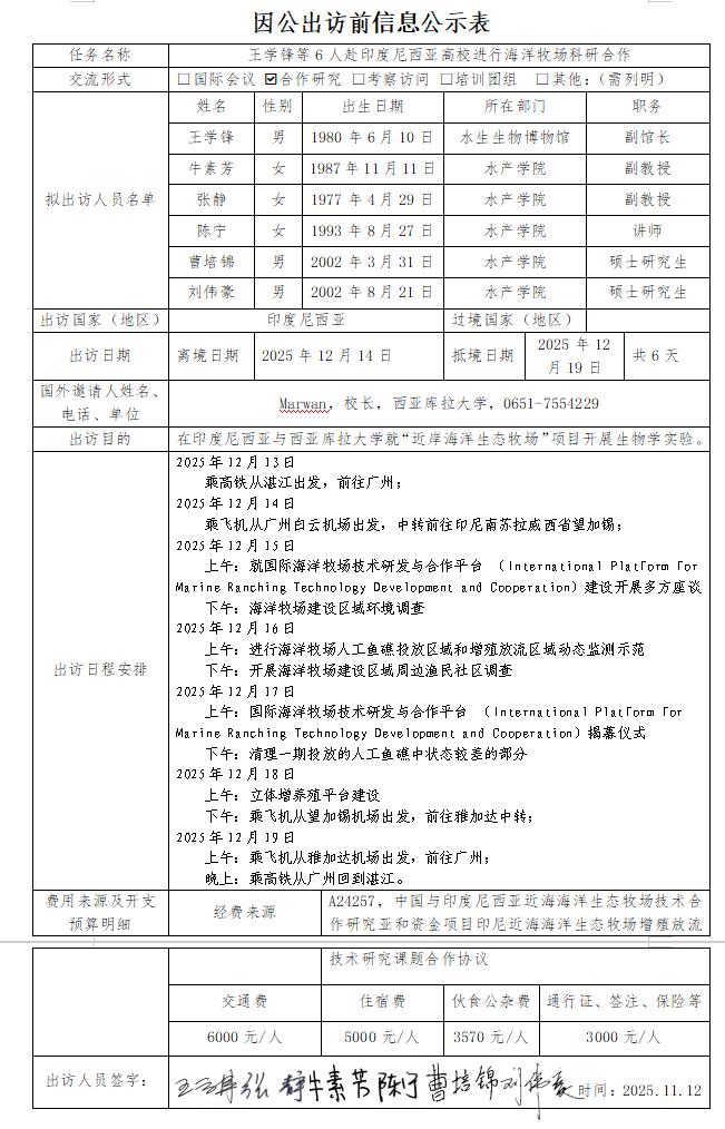附件:因公出访前信息公示表