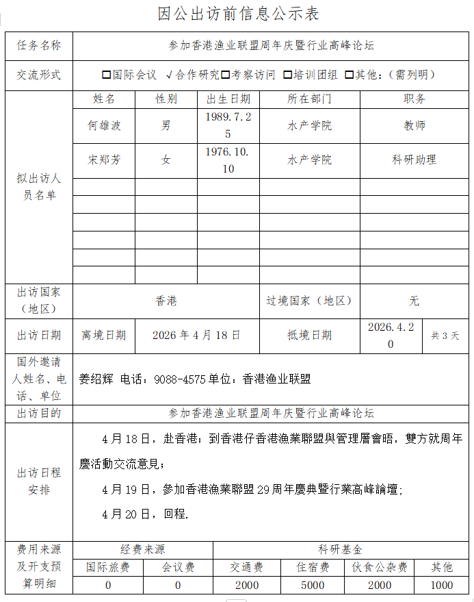 根据《关于进一步规范省部级以下国家工作人员因公临时出国的意见》的要求,现将威廉中国因公出访信息予以公示(详见附件)。公示时间为2026年4月10日至4月16日。如有意见,请在公示期内,向相关单位反映。