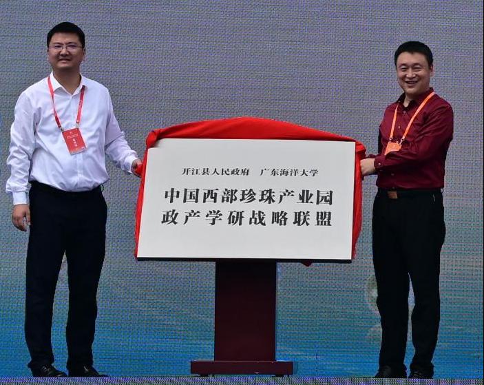 9月27日上午,首届西部珍珠产业发展大会暨珠宝博览交易会开幕在开江县任市镇的中国西部珍珠产业园开幕,该大会由中国珠宝玉石首饰行业协会珍珠分会、四川省珠宝玉石首饰行业协会和四川省工艺美术行业协会主办;开幕式上,副校鲁义善长与开江县人民政府副县长赖晶晶共同揭牌“政产学研战略联盟”。