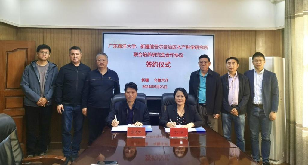 随后,在双方领导和相关人员的共同见证下,李广丽院长代表我校与新疆维吾尔自治区水产科学研究所签署了联合培养研究生协议,并揭牌了联合培养研究生示范基地。签约仪式后,与会的领导、教师及各科室代表就如何进一步推进联合培养研究生及科学研究等工作进行了深入交流。双方表示,将进一步拓宽思路,加强合作,共同为国家和社会培养高层次人才。