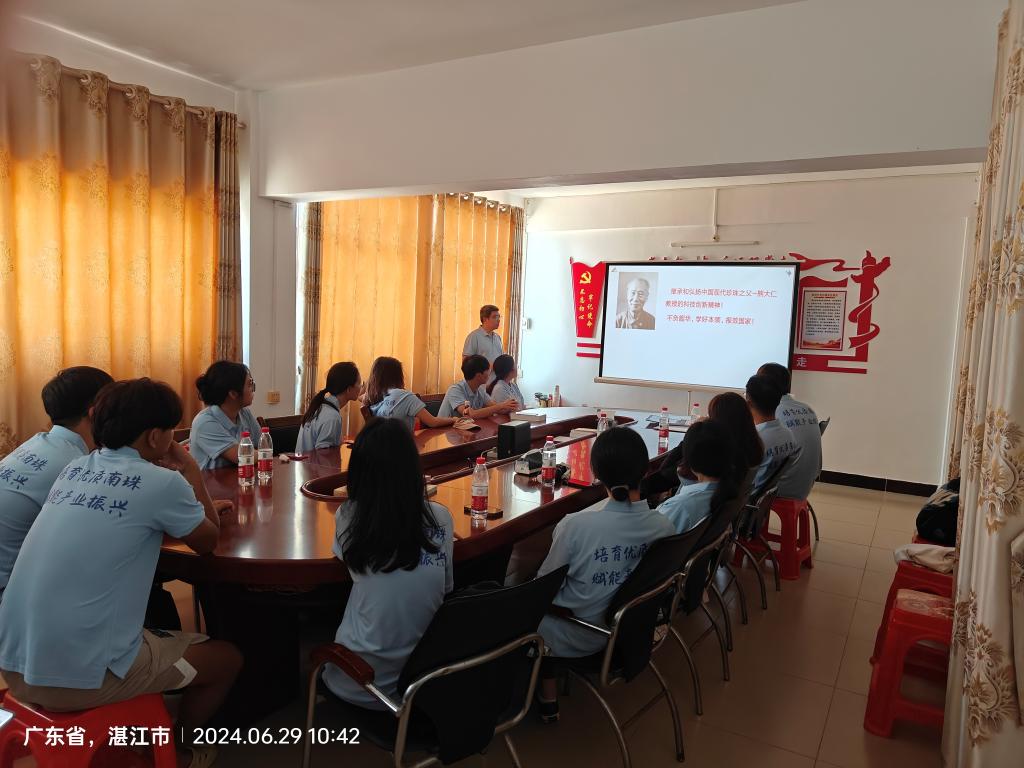 为贯彻落实习近平总书记给科技小院同学们的回信精神和2024年中央一号文件精神,激发研究生为农业、农村和农民服务的热情和责任感,提升研究生从事渔业科技服务的使命感,助力我校“双百行动”取得新成效;6月29日-30日,广东雷州海水珍珠科技小院17名师生在覃斗镇流沙村和英楠村开展了2024年教育实践培训。