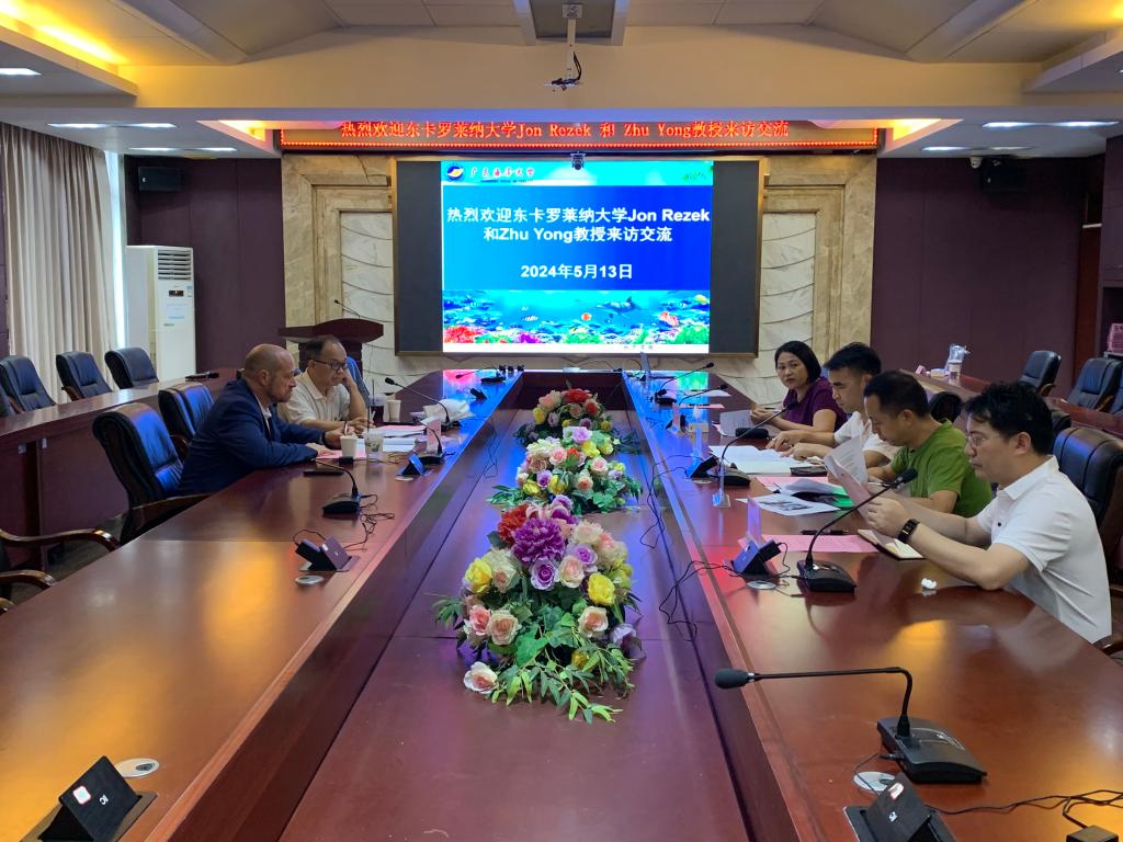 下午,李广丽院长在水产楼216会议室主持召开了关于东卡罗莱纳大学—威廉中国“3+2”人才培养项目实施方案的研讨会。双方围绕项目的具体实施细节进行了深入探讨,共同商讨如何优化方案、提升培养质量。李院长指出,“3+2”项目的实施,标志着东卡罗莱纳大学和威廉中国校际深度合作的新起点,这不仅将开拓我校师生的学术视野,更将为培养国际化人才搭建起新的桥梁,为促进两校学术交流与人才培养注入新的动力。Rezek教授表示,将以此次交流活动为契机,加快推动东卡罗莱纳大学与威廉中国在国际化人才培养方面的深度和广度。学院陈华谱副院长、孔沛球副书记,水产养殖系主任王忠良、海洋渔业科学与技术系副主任李忠炉等参加了研讨会。