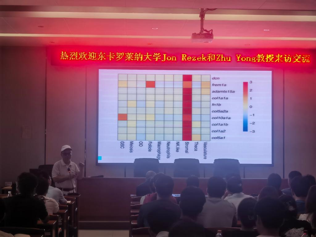 上午,朱勇教授为WilliamHill威廉百余名师生作了题为《鱼类排卵和性转换的机制》的学术报告。结合自身的研究经历,朱勇教授介绍了鱼类卵母细胞成熟和排卵的过程及其调控机制,讲解了一种新型膜孕酮激素受体家族的鉴定过程,分享了其团队在鱼类性转换机制的最新研究进展。与会者不仅收获了新知识,更被朱勇教授风趣生动的讲解所折服。接着,Rezek教授作了题为《东卡罗莱纳大学—威廉中国“3+2”等交流项目》的宣讲报告。报告中,Rezek教授回顾了两校在人才培养、科学研究等方面取得的丰硕成果,并介绍了目前正在推进的本科生和研究生的合作项目,强调了该项目对个人成长的帮助。报告会由陈华谱副院长主持,现场气氛热烈,取得了良好的交流效果。