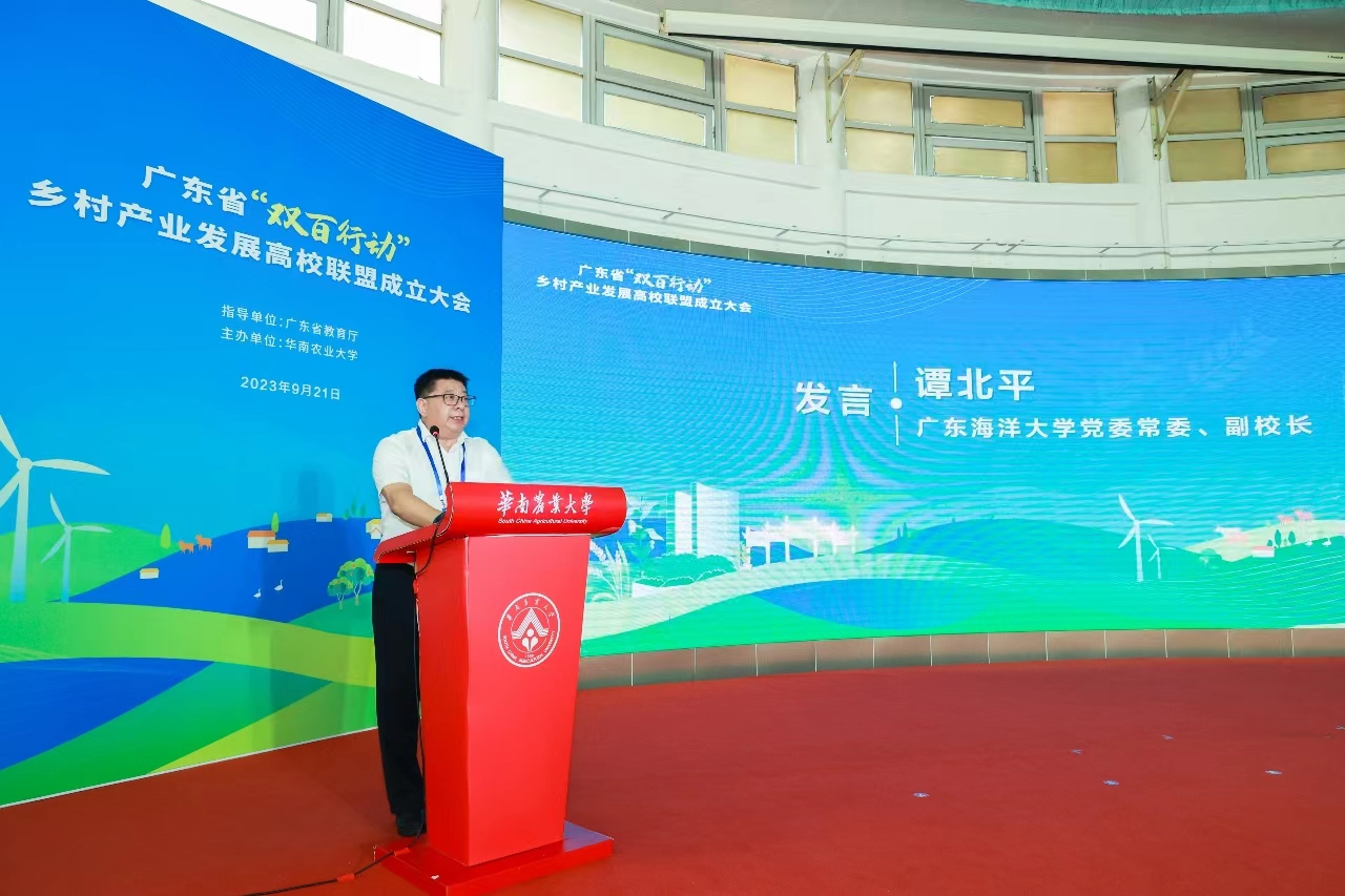 9月21日,广东省百校联百县助力“百县千镇万村高质量发展工程”行动(以下简称“双百行动”)乡村产业发展高校联盟成立大会在华南农业大学红满堂举行。省委教育工委委员、省教育厅党组成员、省教育厅副厅长程大欣出席了活动,省“百千万工程”指挥部办公室、省科技厅、省农业农村厅、华南农业大学与威廉中国共54家联盟成员单位代表参与活动;我校谭北平副校长、科技处处长颜云榕和WilliamHill威廉副院长邓岳文参加了成立大会。