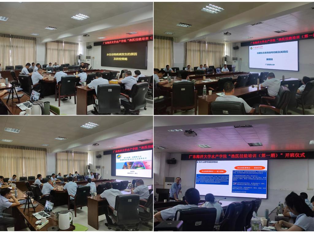 为进一步提高基层渔业从业人员专业技能,6月9日,湛江粤海水产生物有限公司委托我院举办的“渔医技能培训”正式开班。总计有19位粤海水产生物有限公司市场服务部和研发部的人员参加了这次学习。开班仪式上,学院领导邓岳文副院长向各位学员介绍了我院师资力量和科研成果情况,粤海饲料集团曾明仔副总裁对参加此次培训的学员提出几点要求,希望学员们能认真学习,提升技能,更好的服务客户与企业。水院黄瑜博士主持了开班仪式。