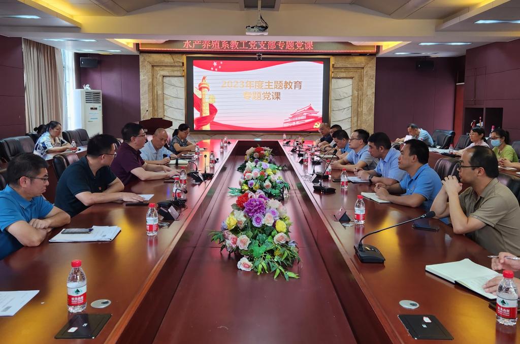 按照学校党委统一部署,5月24日下午,学校党委常委、副校长谭北平到学院讲授了题为《贯彻落实习近平总书记视察广东重要讲话重要指示精神,奋力推进海洋产业高质量发展》的专题党课。学院领导、水产养殖系全体教工党员、科技处党支部全体党员、学生党员代表参加了学习。党课由水产养殖系主任王忠良主持。