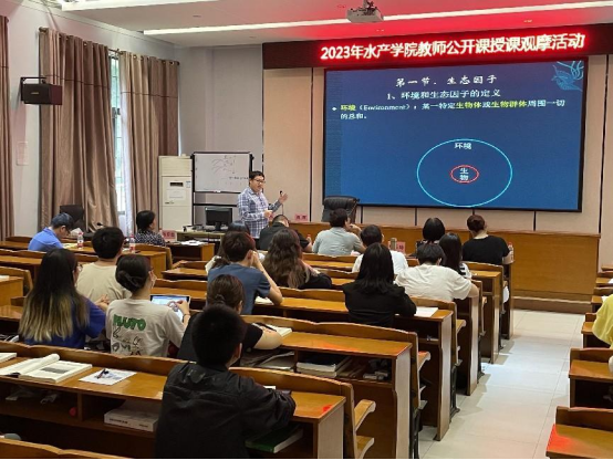第二场公开课由校级课程思政示范课堂负责人周晖老师主讲,主讲课程为《普通生态学》。周晖老师在课堂中融入学科前沿的研究进展,将生态学知识与水产养殖专业紧密结合进行教学。