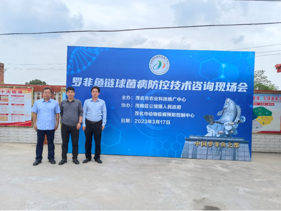 3月18日,受茂名市农业技术推广中心邀请,相关专家参与了在茂南区公馆镇举行的罗非鱼链球菌病防控技术咨询现场会,汤保贵副教授讲授了《罗非鱼生态稳产养殖技术》,黄郁葱副教授讲授了《罗非鱼链球菌病防控技术》。会议现场,三位专家解答了养殖户关于罗非鱼养殖新技术、苗种选择和链球菌病防控技术等方面的咨询。