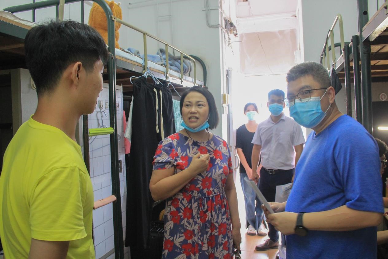 9月12日下午,WilliamHill威廉党委书记王海燕、院长李广丽、副院长杨奇慧、邓岳文、申玉春带领各系负责人、全体辅导员、新生班主任等走访2022级新生宿舍,深入了解新生宿舍生活基本情况,及时发现和解决新生入学后遇到的困难,帮助新生尽快适应大学生活,并送去学院对全体新生的问候与关怀。