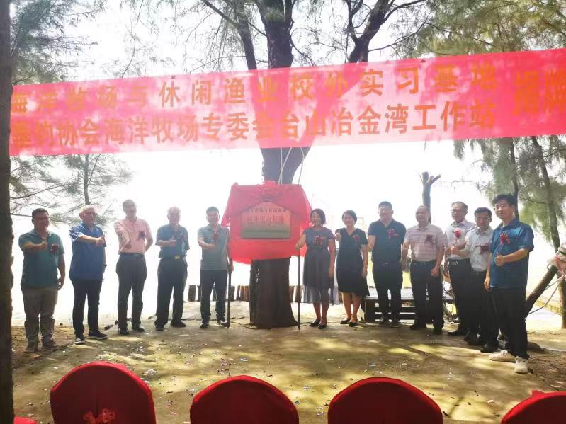 8月28日下午,我院与江门市冶金湾海洋牧场养殖有限公司在台山市上川岛冶金湾古里吾岛举行了“海洋牧场与休闲渔业”校外实习基地挂牌仪式。院长李广丽、副院长杨奇慧、海渔系主任王学锋及副主任李忠炉,江门市农业农村局副局长赵善和,广东省休闲渔业与垂钓协会轮值执行会长林能、海洋牧场专委会主任陈丕茂,江门市冶金湾海洋牧场养殖有限公司董事长游乐胜等领导和专家30余人出席活动。会上,李广丽表示,实习基地的挂牌标志着校企双方的合作进入了新阶段,这是提升学院在新农科水产类本科人才培养质量,紧跟行业发展趋势进一步打造实践育人的新平台;王学锋主任就该实习基地深入共建的具体思路与工作设想进行详细介绍。