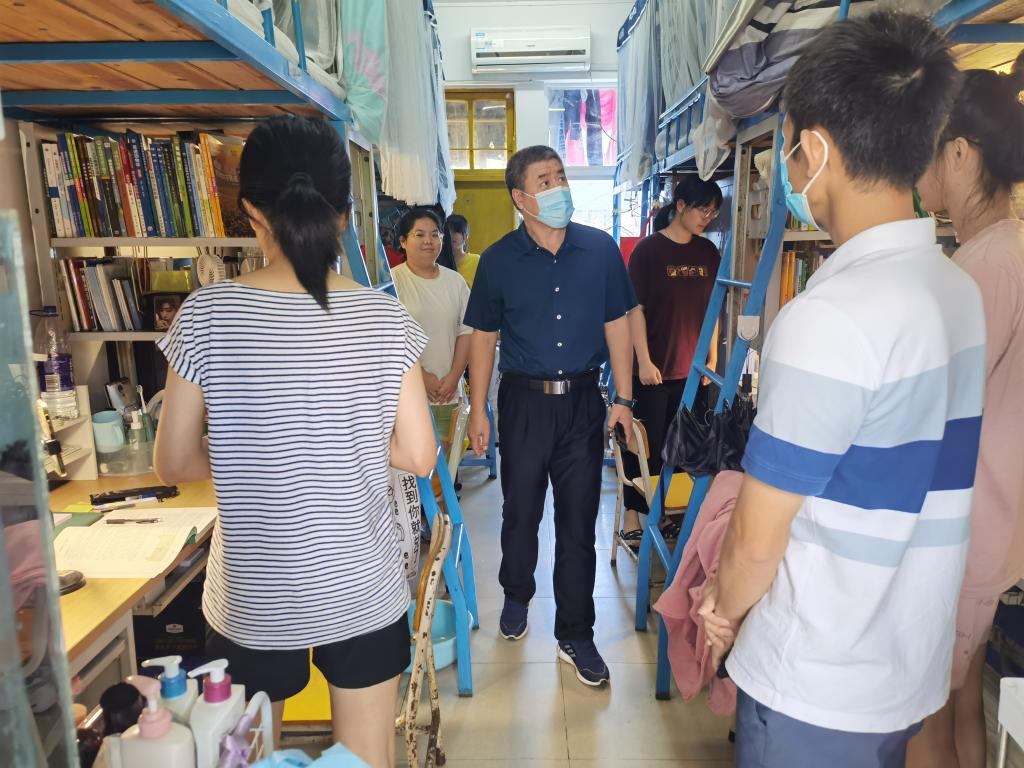 “开学第一天状态适不适应啊?”“上网课的效果怎么样啊?”“在学校学习生活有什么困难没有?”……走访过程中,每到一间宿舍,学院领导和老师们都与同学们进行亲切交谈,耐心了解同学们的思想、学习、生活状况,仔细聆听了同学们的需求。与此同时,叮嘱同学们要特别注意搞好宿舍卫生,保持经常通风,做好防护,加强体育锻炼,督促学生认真做好线上线下学习,养成良好的学习习惯,确保学习有成效。