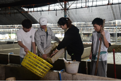 本次调研实践活动中,吕博士带队实地走访考察了东风螺养殖户与养殖企业的情况,与养殖户深入沟通、发现与解决养殖农户存在的问题。通过这次现场调查,培养了学生“一懂两爱”职业情怀与“强农兴农、知农爱农”职业意识,进一步激励学生积极投身农村发展与乡村振兴。
