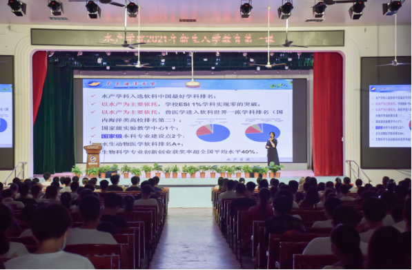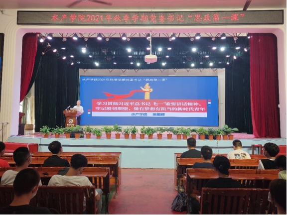 9月15日上午、下午,WilliamHill威廉2021年秋季学期书记院长“思政第一课”在湖光校区东区小礼堂开讲,学院党委书记梁朝辉和院长李广丽主讲。水产学2021级新生共450余人到场聆听学习。