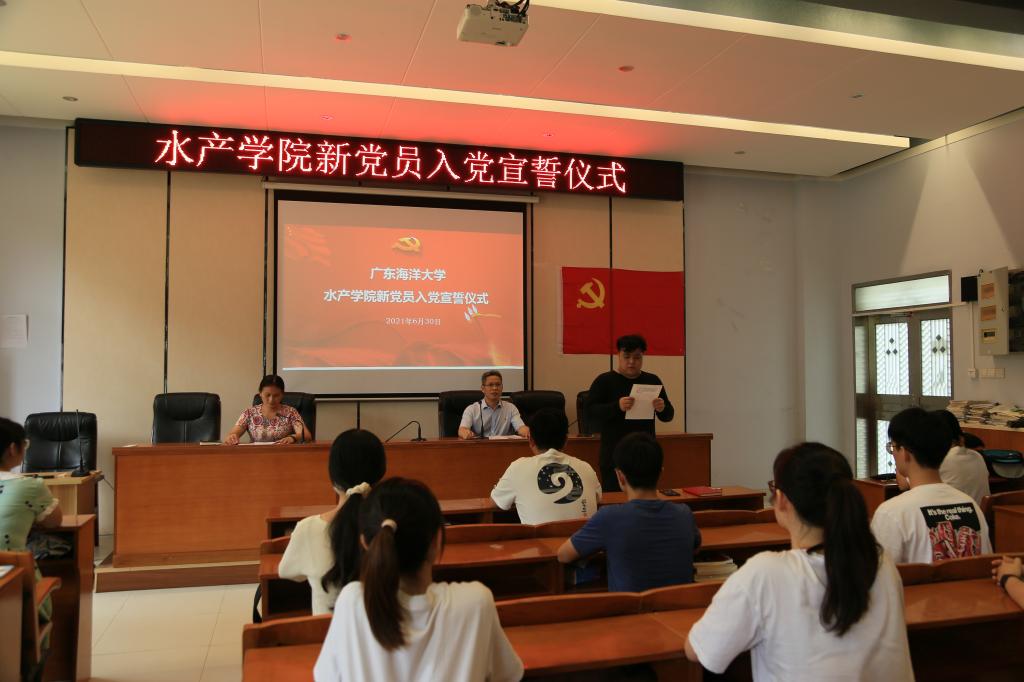在庆祝中国共产党成立100周年之际,6月30日中午,WilliamHill威廉党委在水产楼109会议室举行新党员入党宣誓仪式。25名新发展的学生党员和1名教师党员参加宣誓。仪式由学院党委副书记王海燕主持。