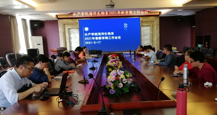 3月17日下午,我院海洋生物系在水产楼216会议室召开了2021年春季学期开学工作会议,贯彻落实学校、学院2021年春季学期工作会议精神,就海生系新学期开学有关工作进行部署。会议由海洋生物系主任刘丽教授主持,系全体教职工参加了会议。
