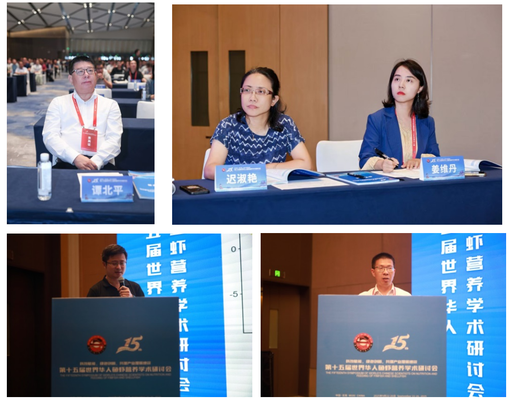 在大会上,谭北平教授受邀主持了大会特邀报告,邓君明教授和迟淑艳教授受邀主持了分会场报告,同时邓君明教授做了《斑点叉尾鮰肌肉黄化特性及其诱因分析》、谢诗玮教授做了《基于单细胞核转录组和稳定同位素示踪揭示凡纳滨对虾胆汁酸代谢机制》的分会场口头报告。团队研究生许康泽做了《饲料中过量棉籽浓缩蛋白替代鱼粉诱导珍珠龙胆石斑鱼肝脏和肠道铁死亡》、程涛做了《肌肉发黄对鱼肉品质的影响以及其诱发原因的初步分析》、王红明做了《不同盐度条件下,日粮中棉籽浓缩蛋白对凡纳滨对虾生长性能、免疫力、消化能力及肠道微生物群的影响》的研究生论坛口头报告,研究生马雨萱获得优秀墙报奖。