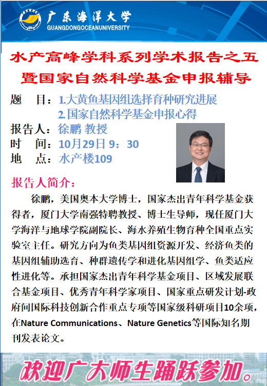 【学术报告预告】水产高峰学科系列学术报告之五暨国家自然科学基金项目申报辅导
