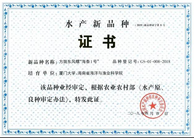 (4)湛江市科学技术局科技计划项目《方斑东风螺新品种“海泰1号 ”引进与示范应用》(项目编号:2019A02020)